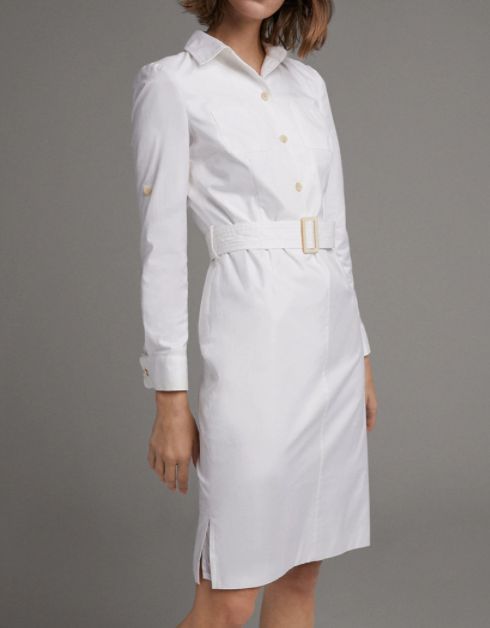 En este caso hemos escogido el vestido camisero de Roberto Verino en color blanco, porque no es habitual que este tipo de prenda tenga un color tan claro en versión lisa y porque resulta muy fácil de combinar con chaquetas, botas, fulares o cualquier otro complemento que se te ocurra si le quieres añadir un toque de color. Y todavía tiene algo más a su favor, ¡ahora mismo cuesta menos de 100 euros!