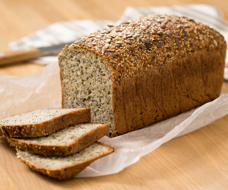 Es un pan integral compuesto por semillas y cereales que cuentan con 245 kcal, teniendo una valoración estupenda en lo nutricional.
