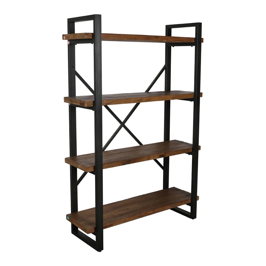 Esta estantería tiene estructura metálica negra, muy resistente. Además, cuenta con unos estantes de madera maciza de olmo. Un producto de mucha calidad, diseño urbano muy combinable, y robusto.