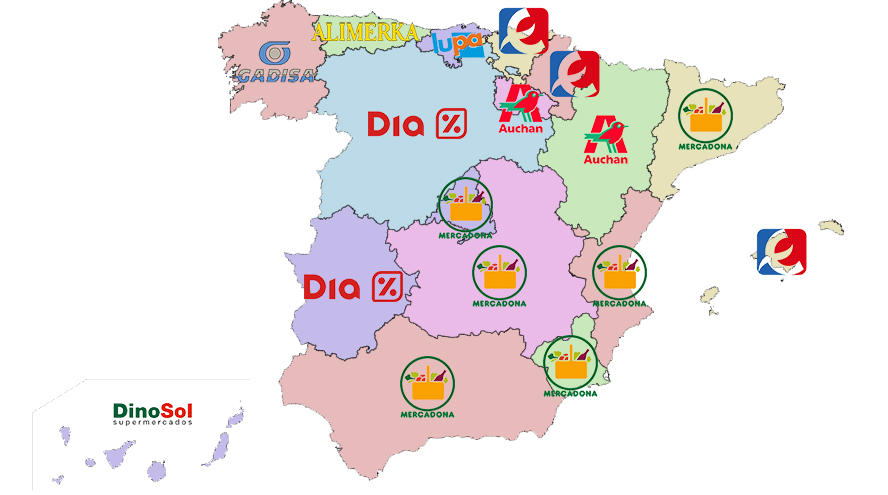 Siguiendo los datos de Retail Data, en Canarias es DinoSol (28,8%) quien le planta cara a la enseña valenciana (20%). Hace 35 años que la cadena abrió su primera tienda en Las Palmas de Gran Canaria. Fundada por los hermanos Domínguez, a lo largo de su historia ha pasado por diferentes vicisitudes económicas, desde ser adquiridos por una multinacional holandesa, a pasar a formar parte de un fondo de capital riesgo británico. Finalmente, volvió a los hermanos.