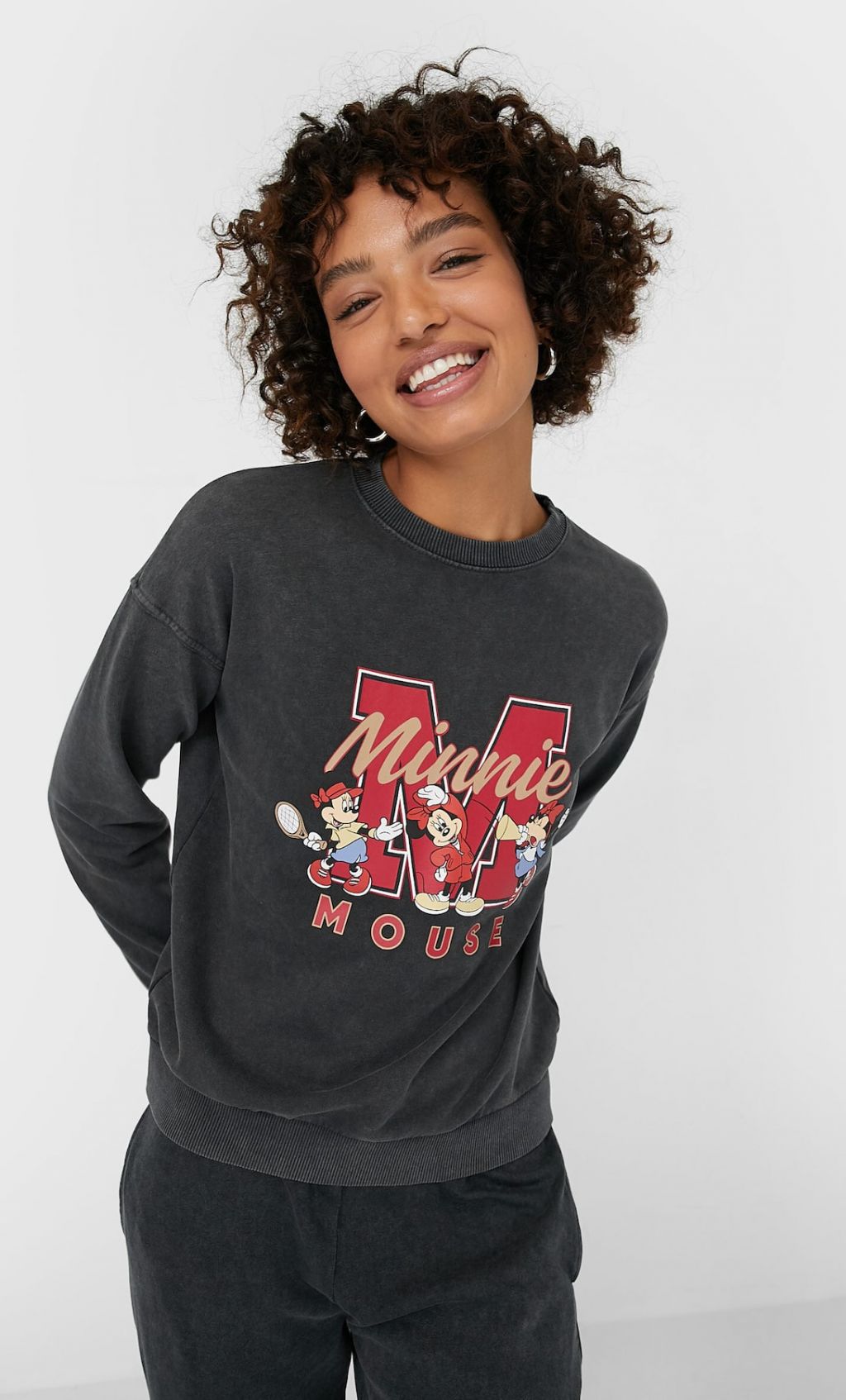 No podemos evitar incluir algunas sudaderas con estampados de dibujos animados, sobre todo si se trata de nuestra querida ratona de Disney, Minnie Mouse. En la anterior sudadera, podías verla sobre un fondo tie dye estirando para hacer algo de ejercicio. Pues bien, en esta ya está preparada y dándolo todo.