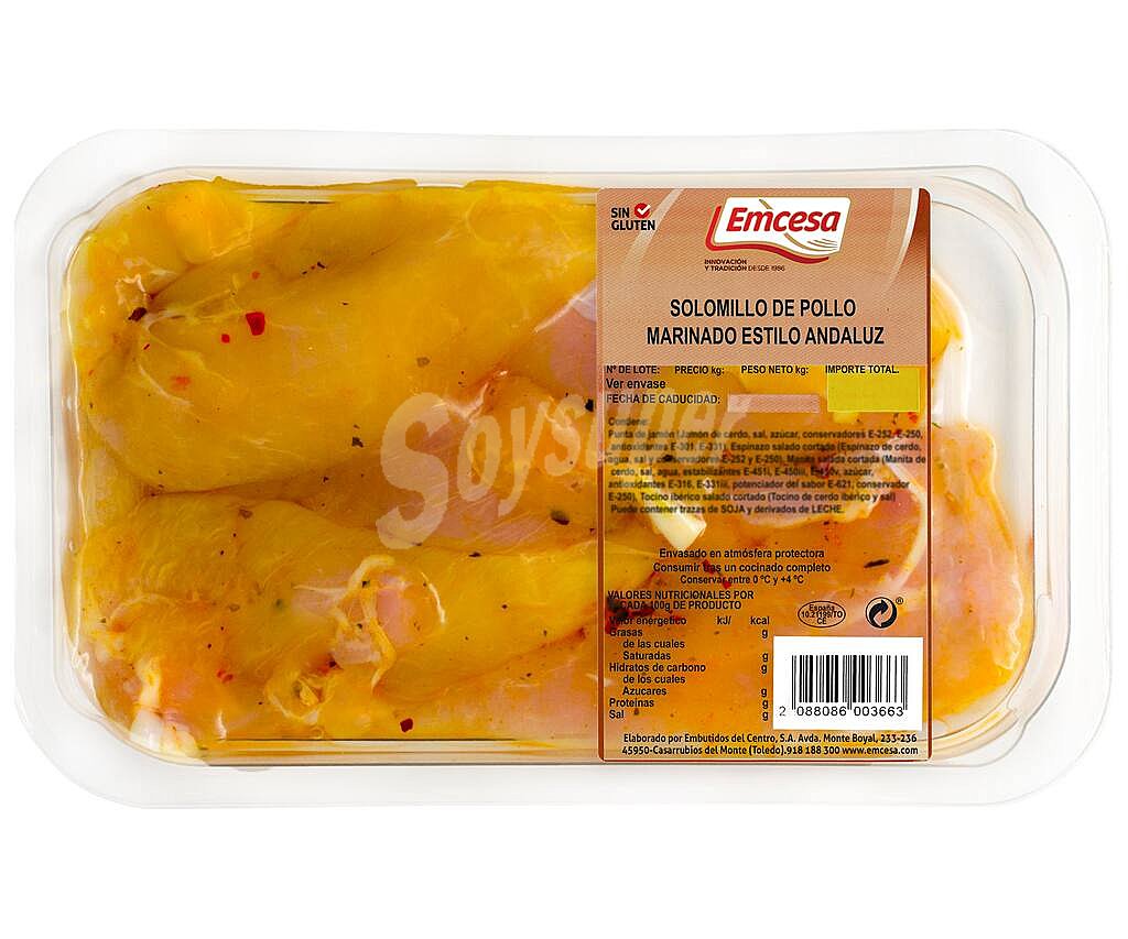 Con un precio de 10,19 euros por kg, el solomillo de pollo Marinado Andaluz cuenta con un puntaje de 62/100.