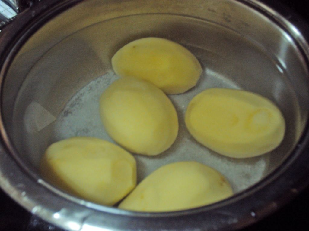 A continuación, pon el agua a hervir con sal y añade las patatas lavadas, peladas y cortadas durante unos 10 o 15 minutos. Antes de sacarlas del fuego, pínchalas con un cuchillo para comprobar que están blandas. Ahora, con todo listo, lo único que falta es triturar, puedes elegir el método que te sea más cómodo, como un aplastador de verduras o un tenedor.