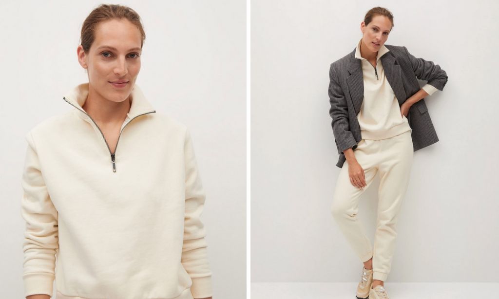La primera prenda de venta solo en la tienda online de Mango es esta sudadera de algodón con cremallera en este color tan atractivo para combinar con multitud de prendas y complementos para tus looks más casual.