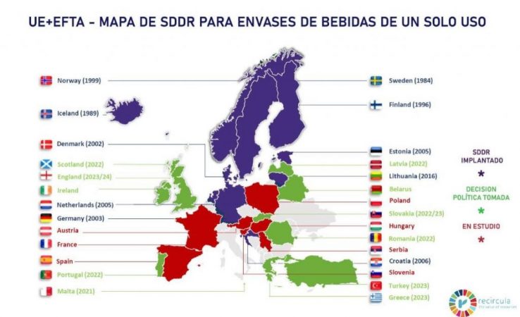Por ejemplo, Portugal, trabaja desde hace más de un año para estrenar un Sistema de Depósito a partir de 2022 y ya ha puesto en marcha, a pesar de la pandemia, pruebas piloto en más de una veintena de supermercados de todo el país para fomentar la devolución de botellas de plástico al comercio.