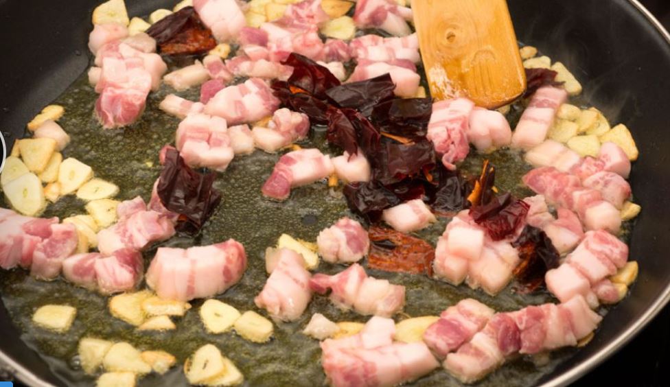 El elemento principal y que más debemos cuidar es el pan. Debe estar duro, tanto que se pueda cortar con un cuchillo de sierra. Debemos partirlo en rebanadas muy finas. Y lo ideal es ponerlo en remojo en agua un poco para que tenga más de jugosidad. Deberemos añadir un poco de aceite de oliva en una sartén, en la que sofreiremos el ajo y el chorizo (o panceta). Cuando esté el ajo dorado y el chorizo tostado, añadimos el pan. Este es el paso fundamental. Mucha gente agrega más y más aceite cuando lo que hace falta es tener paciencia y remover mucho hasta que el pan, poco a poco, se vaya tostando.