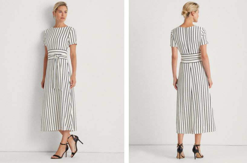 En esta colección, Ralph Lauren homenajea el estilo de vida moderno de la mujer elegante actual. Los diseños de Lauren, como este vestido midi de falda larga y cuello barco, están elaborados con tejidos refinados, siguiendo siempre las sofisticadas proporciones que tanta fama y prestigio han dado a la casa de alta moda. La mujer que nos propone Ralph Lauren con este discreto pero elegante vestido es una mujer femenina, segura de sí misma, con buen gusto pero que no renuncia a la comodidad y la versatilidad. El toque del cinturón define la cintura y permite a la falda volar sin excesivo vuelo. Ideal para combinar con un blazer en caso de necesidad y un zapato cerrado de tacón alto. Consíguelo en El Corte Inglés por solo 169 euros.