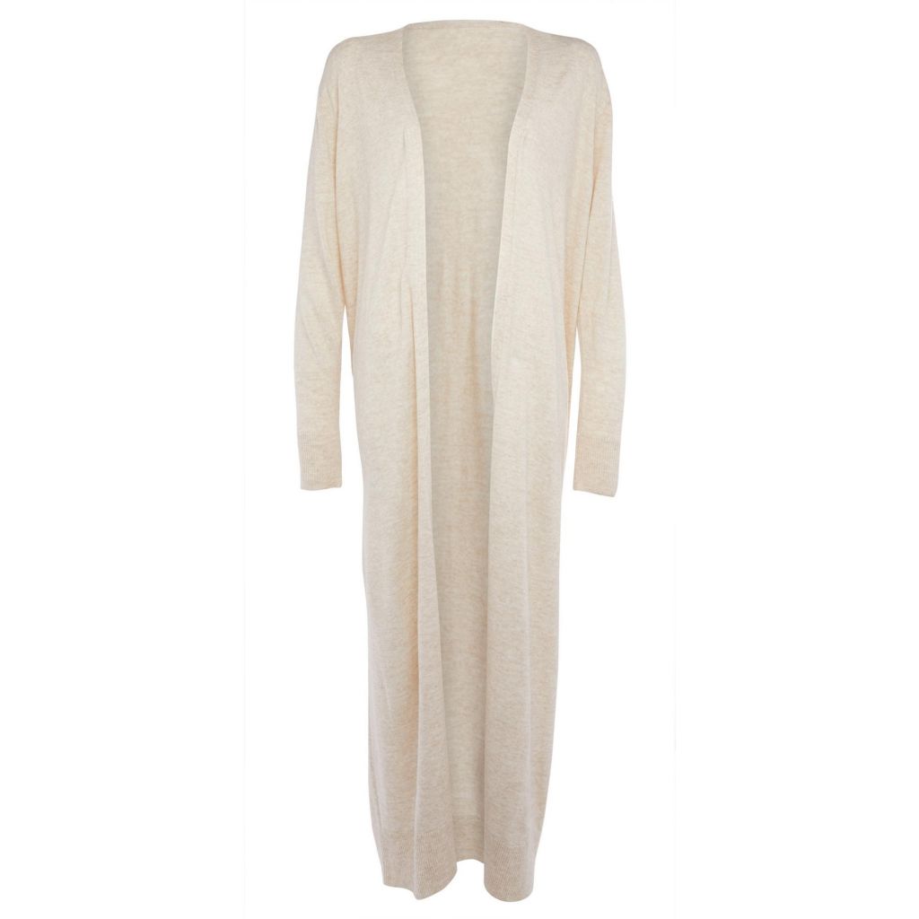 Una de las tendencias básicas de este otoño en ropa de mujer, a la que sin dudar se lanza Primark, es el punto. Sí, por encima de la lana o los sintéticos, el punto vuelve con fuerza para hacerse con chaquetas, vestidos y hasta faldas. En el caso de esta chaqueta de la marca de ropa low cost, además, se une una segunda tendencia: la ropa XL. Y es que lo largo está otra vez de moda, para alegría de sus más ardientes defensores. En esta prenda nos encontramos con una chaqueta de tiro largo, cuello redondo y mangas con remate ajustable, que además no presenta ni botones ni automáticos, por lo que se lleva suelta. Y cuando aprieta el frío, se cruza y hace divina. El tono en crudo aligera los tonos dominantes del otoño, sin alejarse de las tonalidades reinantes.
