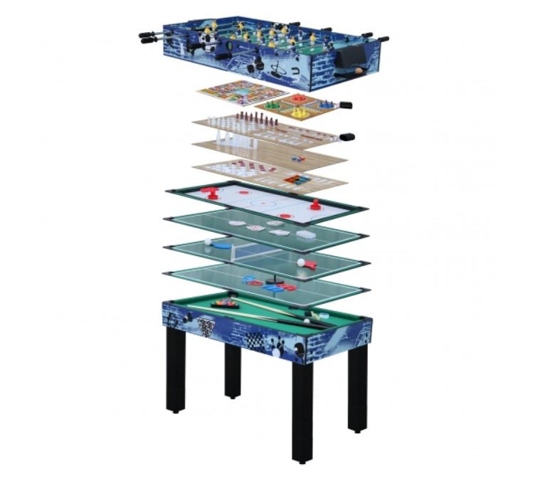 Cómoda de manejar, pesa 30kg aproximadamente, contiene divertidos juegos: futbolín, billar, black, Jack, hockey, ajedrez y juego de damas, parchís y oca, lanzamientos de aros y juego de herradura, black gammon, ping-pong, bolos, shufle board, y tic-tac-toe, para esparcimiento de peques crecidos y hasta los abuelos. Por sólo 89 euros en Carrefour se divierte toda la familia, y con accesorios incluidos. ¿No te parece un chollo irresistible? La puedes poner casi en cualquier sitio y pasar un poco mejor tanto tiempo en casa, sobre todo lejos del sofá.