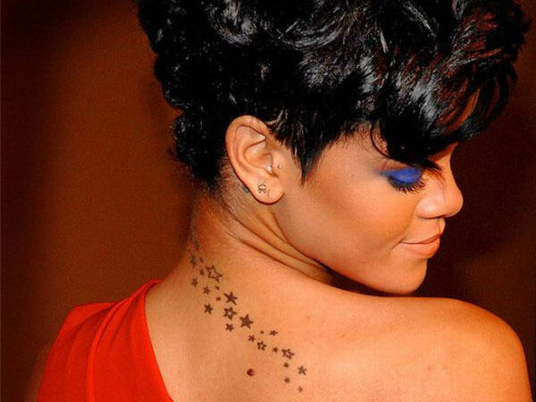En la nuca, la cantante de Barbados luce un reguero de estrellas y bajo la clavícula, la frase ‘Never a failure, always a lesson’ (‘Nunca una derrota, siempre una lección’) escrita al revés para ser leída en un espejo. Vamos, que a la cantante Rihanna, que por cierto es la cantante con más dinero del mundo, eso de los tatuajes le gusta, y mucho.