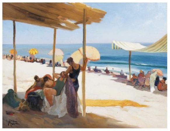 Son dos las pinturas de Lluís Masriera los que pone a la venta Subarna, el primero, llamado «BAILABLE (LA DANZA DE LOS VELOS)», es un óleo sobre tabla que se colgó en la Exposición de Primavera de Barcelona de 1935. Lleva un precio de salida de 1.000 euros. Sin embargo, el protagonismo lo roba el cuadro «BAJO LA PÉRGOLA», óleo sobre lienzo firmado y fechado con precio de salida de 3.000 euros. Se trata de un precioso paisaje de playa con un sello de la Aduana Central de París.
