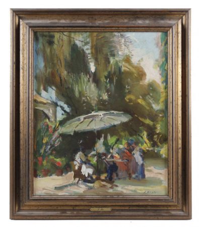 Una pintura de Joaquim Mir i Trinxet se coloca en segunda posición con el precio de salida más alto, superado tan solo por una sortija solitario de diamante. Titulada «El parasol», la pieza es un óleo sobre lienzo vertical con precio de salida de 12.000 euros. Restaurada por Marçal Barrachina, data de 25 de noviembre de 1988. Se trata de un pintor galardonado en exposiciones de Madrid y Barcelona, que ha llevado sus trabajados a ciudades como Washington o Ámsterdam.