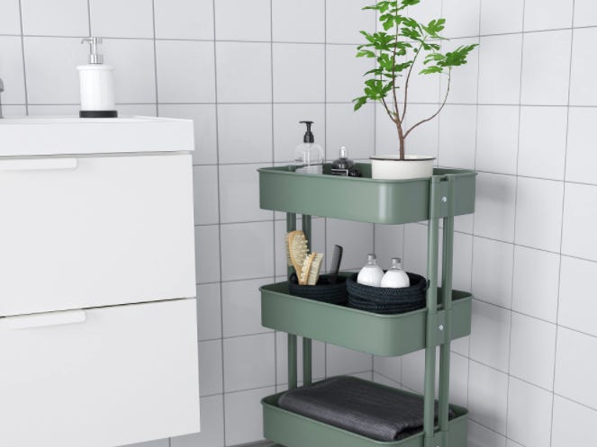 Este es uno de esos productos de IKEA al cual le puedes dar varios usos diferentes. Todo depende de lo que necesites, y cómo quieres que encaje en tu hogar. Por ejemplo, un lugar muy fácil es el baño, pues puede ser útil para almacenaje de toallas, o papel higiénico, toallitas y demás.