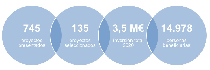 Esta es la tercera convocatoria del Programa de Ayudas a Proyectos de Iniciativas Sociales 2020, que este año invierte un total de 17,5 millones de euros también en la atención al envejecimiento, a la discapacidad y a la enfermedad, a la lucha contra la exclusión social y la pobreza infantil, viviendas para la inclusión social, a la promoción de la interculturalidad y a la acción social en el ámbito rural.