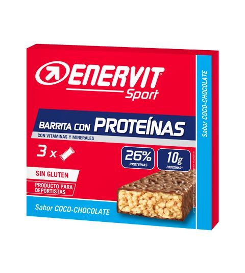 Los batidos y los yogures no son para todos, ya que algunos prefieren alimentos sólidos. Por este motivo hay barritas, como por ejemplo las Enervit del supermercado valenciano, unas barras que prometen un 26% de proteínas.
