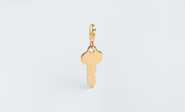 Es una colección minimalista, y no, no es para una pulsera como en Pandora. En cambio, sus charms son para llevarlos de colgante en un collar. Tienes dos para elegir, una cadena más fina y otra algo más gruesa al ser de eslabones. El primer diseño que te queremos enseñar es este de una llave. Claro que hay un candado, pero obviamente, las piezas se venden por separado. Este es el enlace a través del cual podrás encontrarlo.