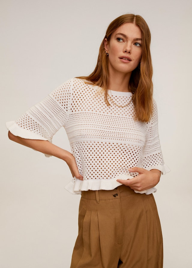 El primer jersey de Mango que queremos mostrarte es más bien para estos días de entretiempo en los que no está muy claro si va a hacer calor o frío. Sin duda son los mejores días, ya que la temperatura suele ser la perfecta para ir con manga larga y sin tener que sufrir ningún extremo en temperaturas.