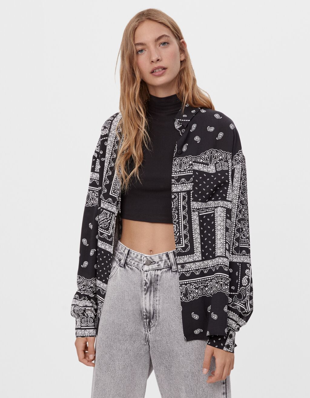 Pero si quieres continuar llevando una bandana contigo, en lugar de ponértela en el pelo, puedes comprar la camisa con print bandana que tienen en Bershka.