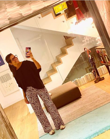 En algunas ocasiones, hay famosas que se ponen prendas de Zara, pero lo hacen con prendas del año pasado. Un buen ejemplo es Nuria Roca, quién llevó un pantalón print de leopardo que hizo furor. En la fotografía vemos a Nuria combinando a la perfección el pantalón con un jersey de color negro oversize, además de unas menorquinas beige.