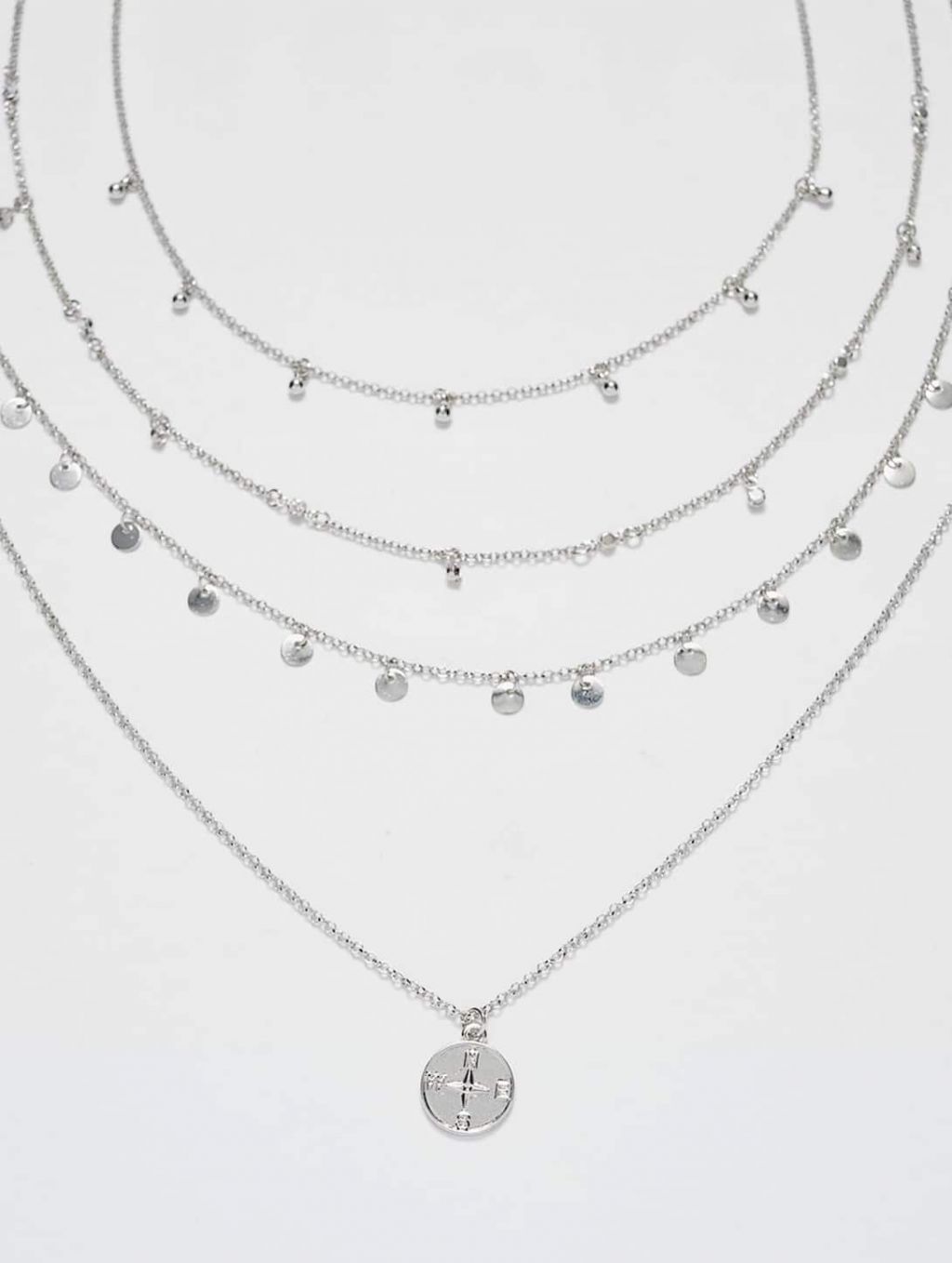En Stradivarius tienes este set con cuatro collares de diseños diferentes. El modelo más largo tiene una pequeña moneda y los demás monedas más pequeñas y cristales. Este es el enlace donde vas a poder encontrarlo.