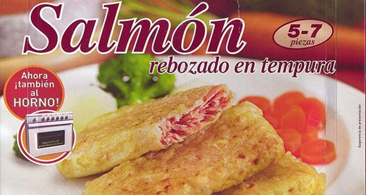 Esto lo vimos ya con los filetes de merluza del Cabo, pero lo cierto es que no es la única manera de comprar pescado congelado en su supermercados. Nos referimos a su auténtico salmón rebzoado en tempura.