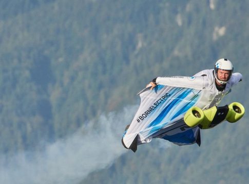 La firma automovilística BMW, a través de su división de movilidad eléctrica BMW i, junto con Designworks y el paracaidista y saltador profesional austriaco Peter Salzmann han desarrollado un traje con alas con un motor eléctrico para volar sin emitir gases a 300 kilómetros por hora.