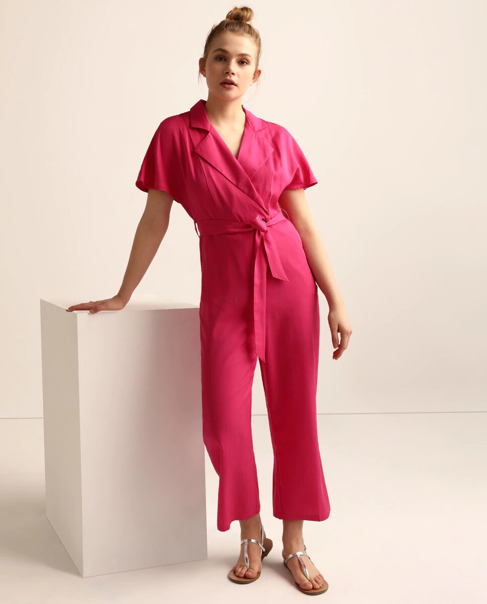 El último mono que te presentamos de esta lista puede ser perfecto tanto para ir a la oficina como a una cena elegante. Como siempre os decimos, el truco está en los complementos, el pelo y el calzado. Si el fucsia no te parece adecuado para un look de oficina, no hay problema.