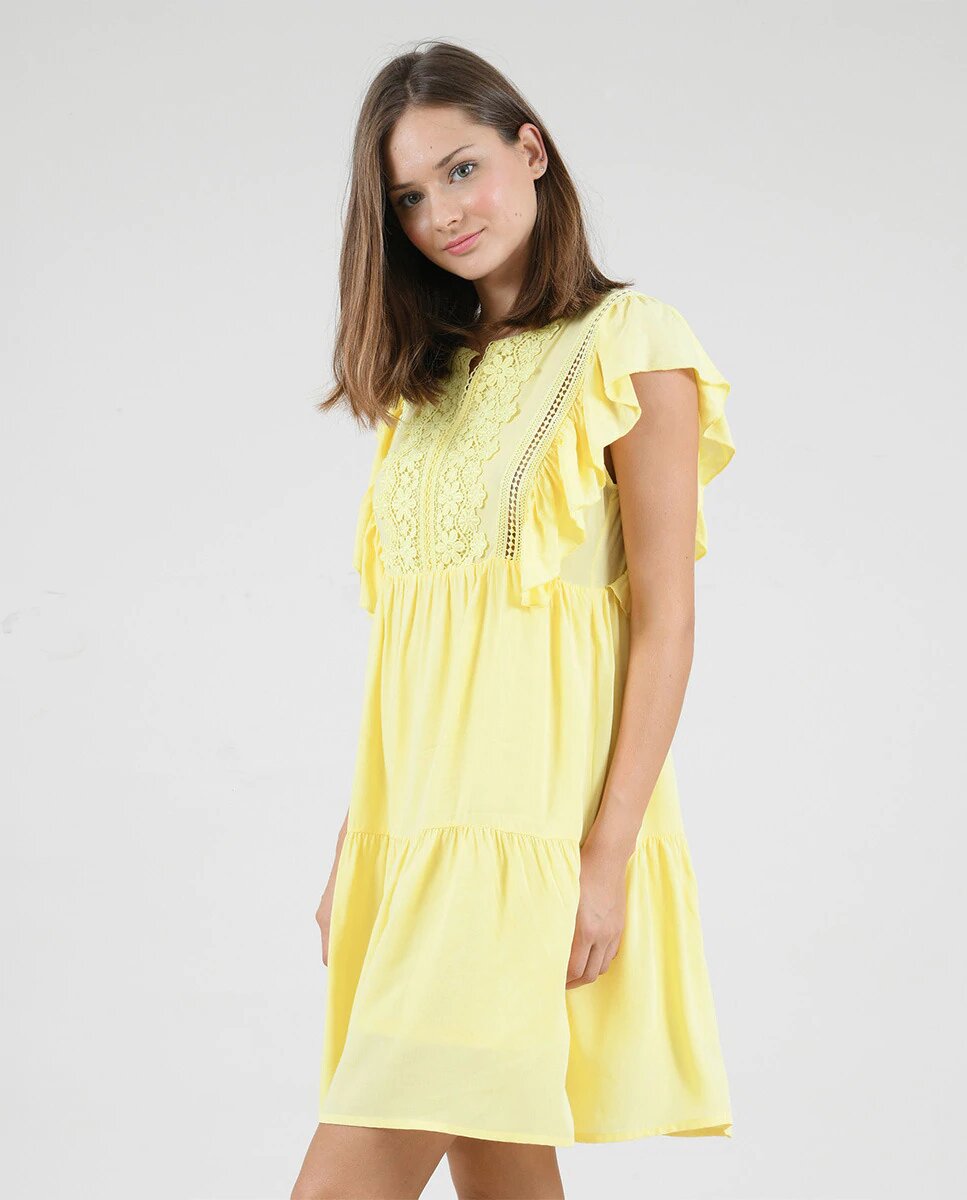 En el frontal cuenta con detalle de volantes y bordados que son una verdadera ternura. El color, aunque amarillo, es muy suave, lo que acentúa más este estilo dan dulce. El precio original de este vestido es de 72,75 euros, pero con el descuento del 70%, puedes adquirirlo entrando en este enlace por solo 21,83 euros.