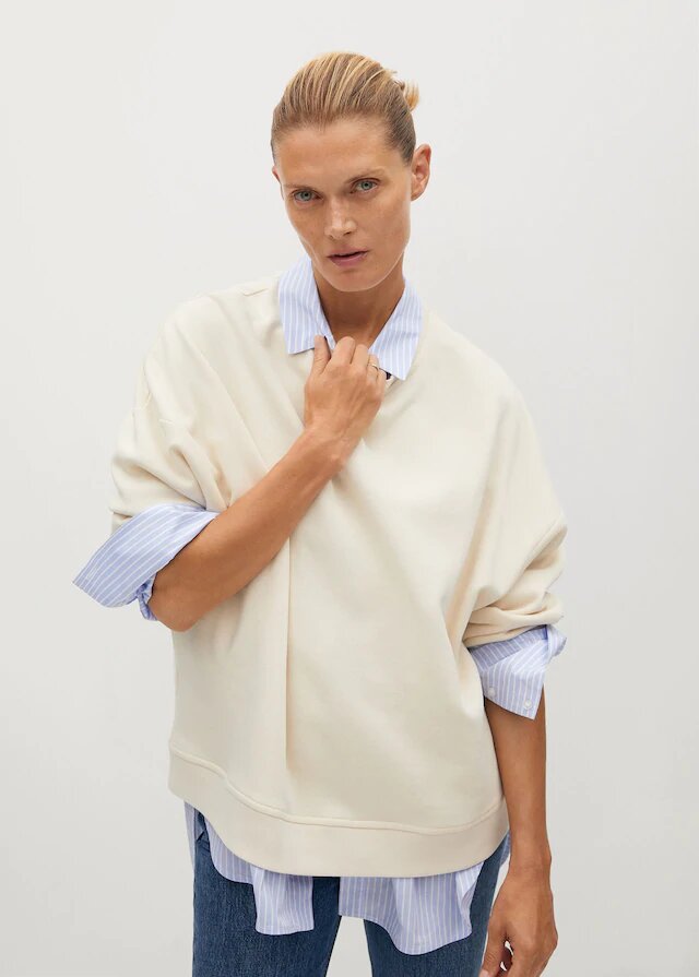 No todo iba a ser ropa elegante en esta lista, en Mango han rebajado una gran variedad de ropa, como esta sencilla sudadera oversize de algodón en color beige.