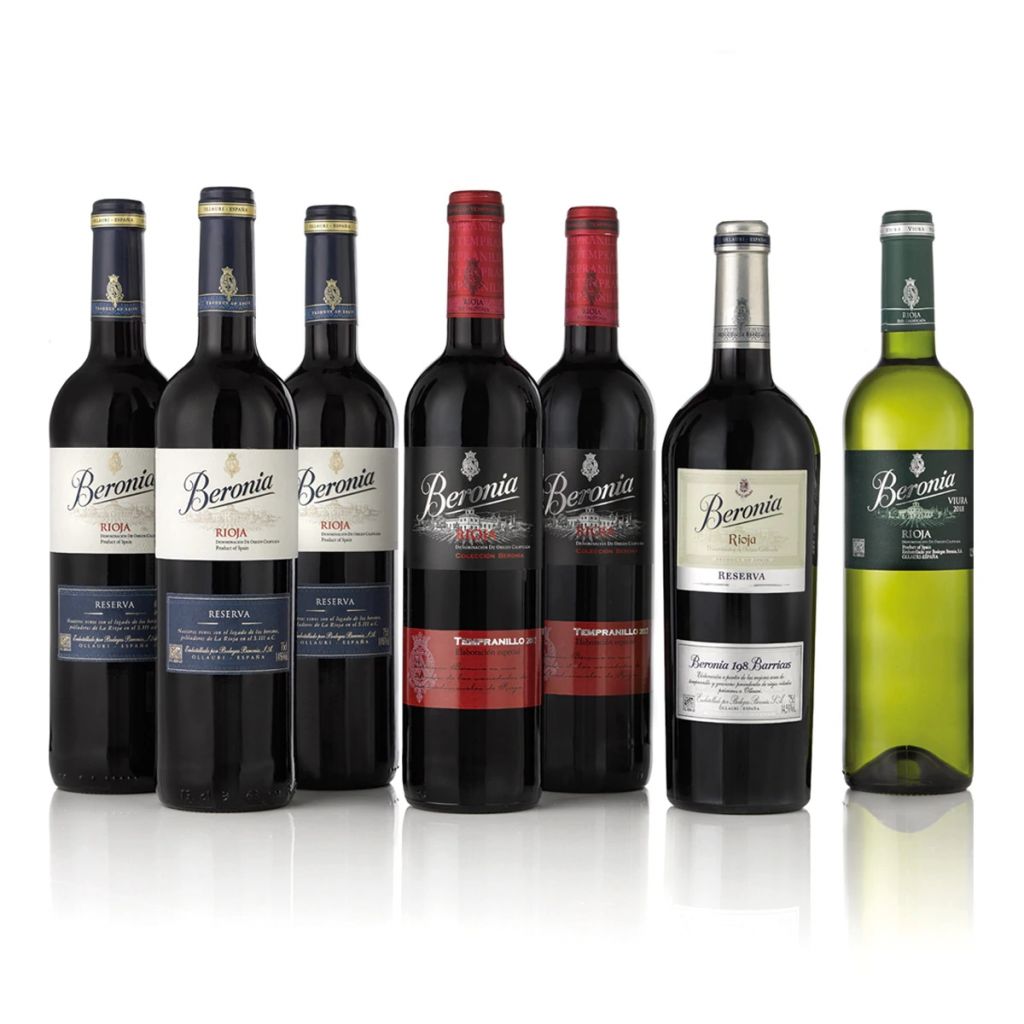 En la caja se incluye 1 botella de Beronia 198 Barricas Reserva de cosecha 2011, 3 botellas de Beronia Reserva de la cosecha de 2014, 2 botellas de Beronia Tempranillo de 2017, y 1 botella de Beronia Viura 2018.