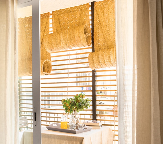 Por lo que entre las grandes propuestas que te presentamos, aparece la del nuevo salón sin cerrar, o lo que es lo mismo: podemos optar por no cerrarlos del todo y escoger correderas de listones que permitan que entre la luz, como vemos en esta imagen, a modo de contraventanas mallorquinas, como se le conoce. Será como un aislamiento con persianas de fibra, entre otros materiales.