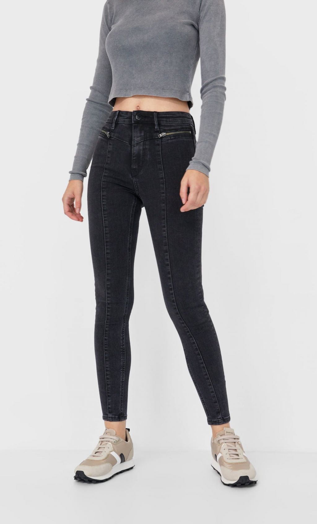 Estos pantalones vaqueros de Stradivarius no solo son ideales por su tiro alto y ser ajustados, sino por el detalle de costuras en la parte frontal de las perneras. Al igual que la banda lateral que os hemos mostrado antes ayudaba a estilizar, estas hacen lo mismo.