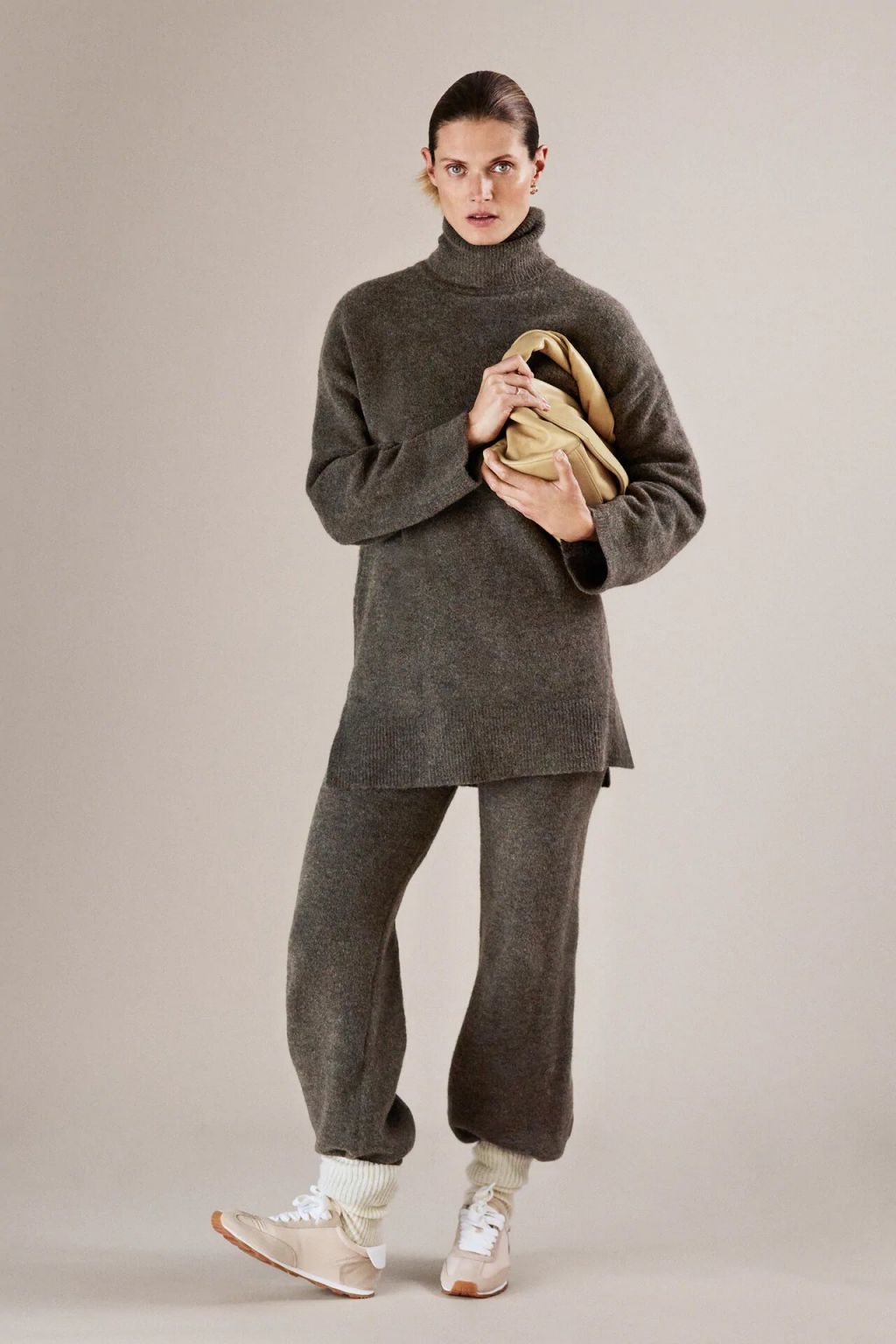 El color es visón vigoré, es un diseño largo y de punto con cuello subido, así que lo tendrás bien protegido del frío. Cuenta con manga larga y un bajo con aberturas laterales. Este es el enlace para encontrarlo.