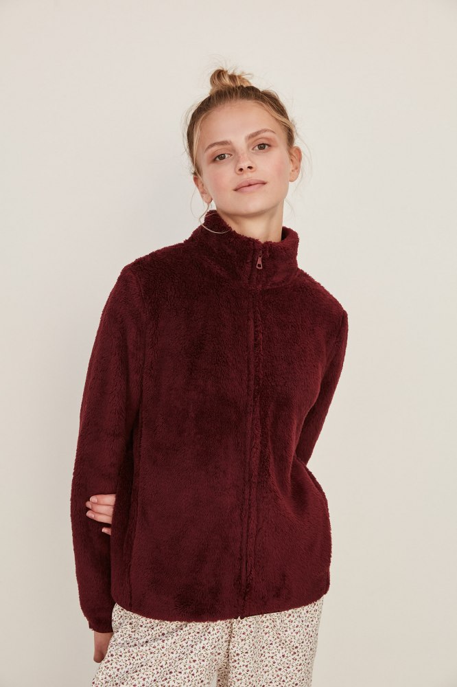 Un modelo cálido y confortable que viene genial para cuando te apetece estar en casa cómoda y sin pasar frío, incluso lo puedes usar encima del pijama si no quieres ponerte una bata. Una chaqueta muy versátil que te vendrá muy bien tener siempre a mano. Además, la tienes disponible tanto en burdeos como en blanco.