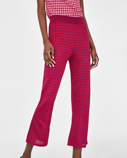 Y ha funcionado realmente bien. Se ve como un pantalón con estampados de pata de gallo en granate y morado. En él predomina en el color rosa, y una vez más, no queda rastro en sus estantes. Tiene destellos en tonos granate y morado y está diseñado con el estampado de tipo pata de gallo. Las tres tallas se han vendido en un suspiro.