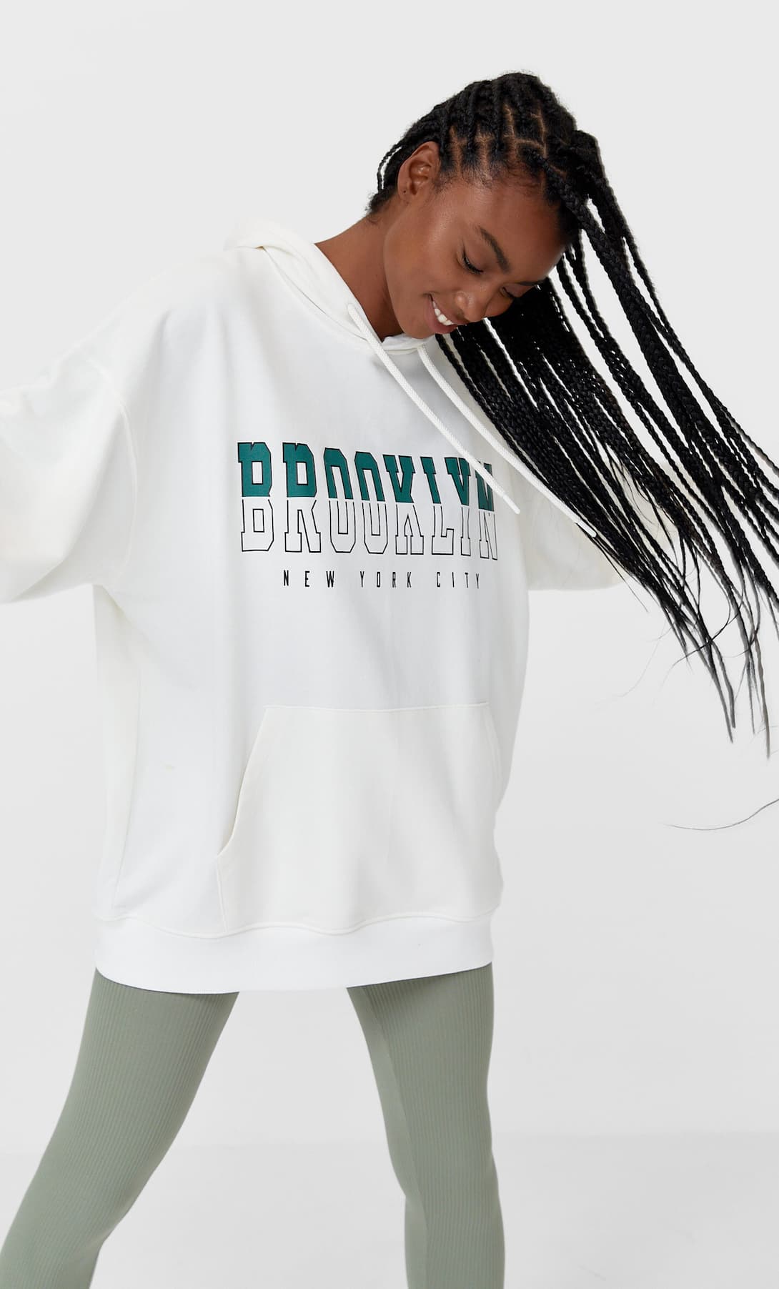 Es una sudadera con capucha con detalle estampado en la parte frontal y un cómodo bolsillo central. Te irá genial para estar cómoda en casa y también cuando te apetezca salir a la calle con un estilo más deportivo e informal.