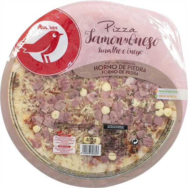 Dejando detrás a las tres pizzas fabricadas por el gigante Casa Tarradellas, tenemos que irnos a la pizza de Auchan de Alcampo. En concreto, estamos hablando de la variante de jamón y queso, una de las mejor cumple con los mandatos de la OCU en cuanto a calidad. Como siempre, hablamos de que la presentación esté bien, de que la masa esté bien cocinada y que los ingredientes no estén duros.