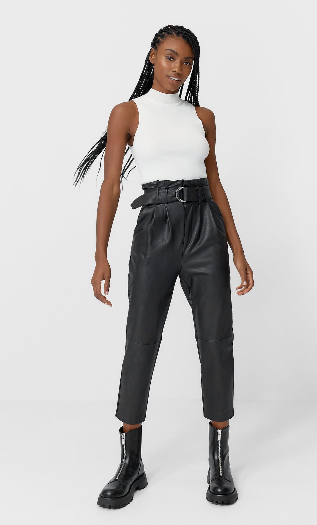 7Pantalón paperbag de efecto piel en Stradivarius