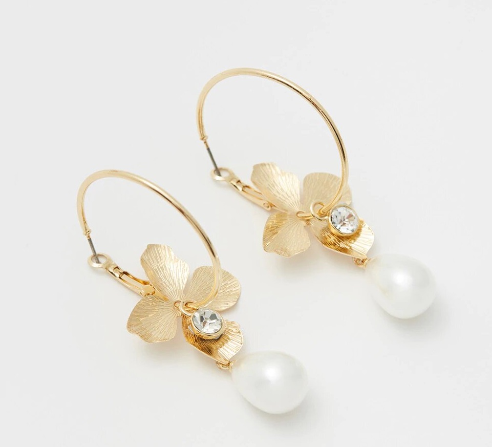 Estos aros dorados de Sfera no solo tienen un tamaño ideal, sino que además cuentan con un detalle de flores metálicas en el mismo tono que se ve espectacular, y le aporta un punto de exclusividad.