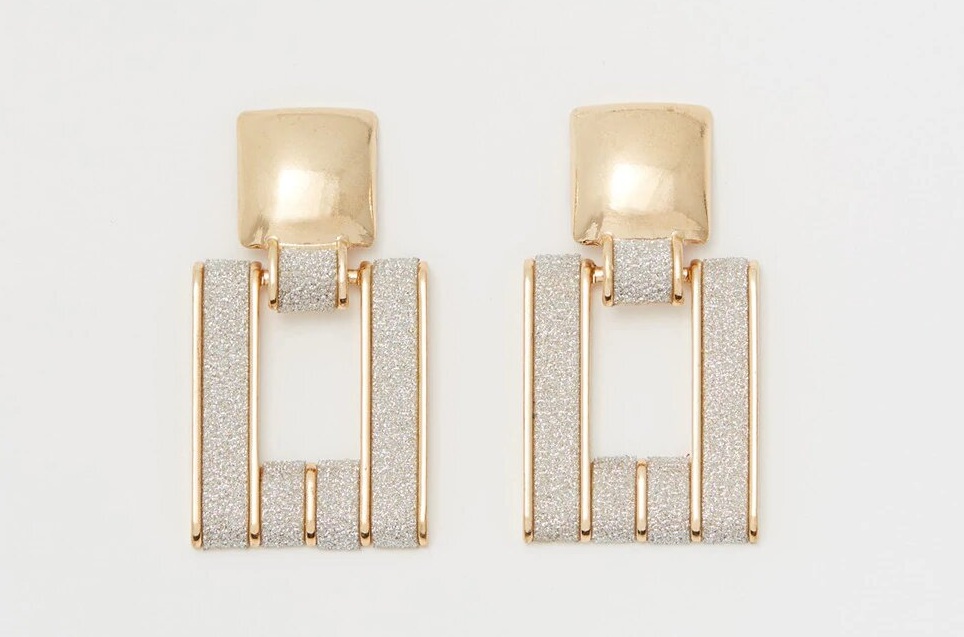 Se trata de un diseño cuadrado que encajará a la perfección con tus looks más elegantes. En tono dorado y cubiertos de pequeños cristales, son sin duda una gran elección.