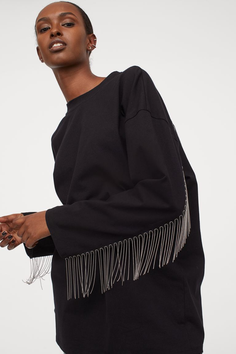 Esta prenda de H&M es perfecta si quieres vestir casual, pero sin dejar el estilo en casa. Es un top muy sencillo en color negro que destaca por el detalle de sus flecos en las mangas.