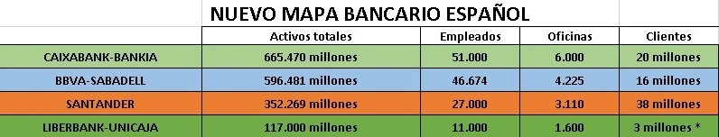 El mapa bancario será muy diferente en 2021, Bankia y CaixaBank se situarán como la primera entidad en España por activos, seguido de BBVA-Sabadell, Banco Santander y Unicaja-Liberbank. Bankinter sería el quinto, pero han decidido que quieren seguir solos.