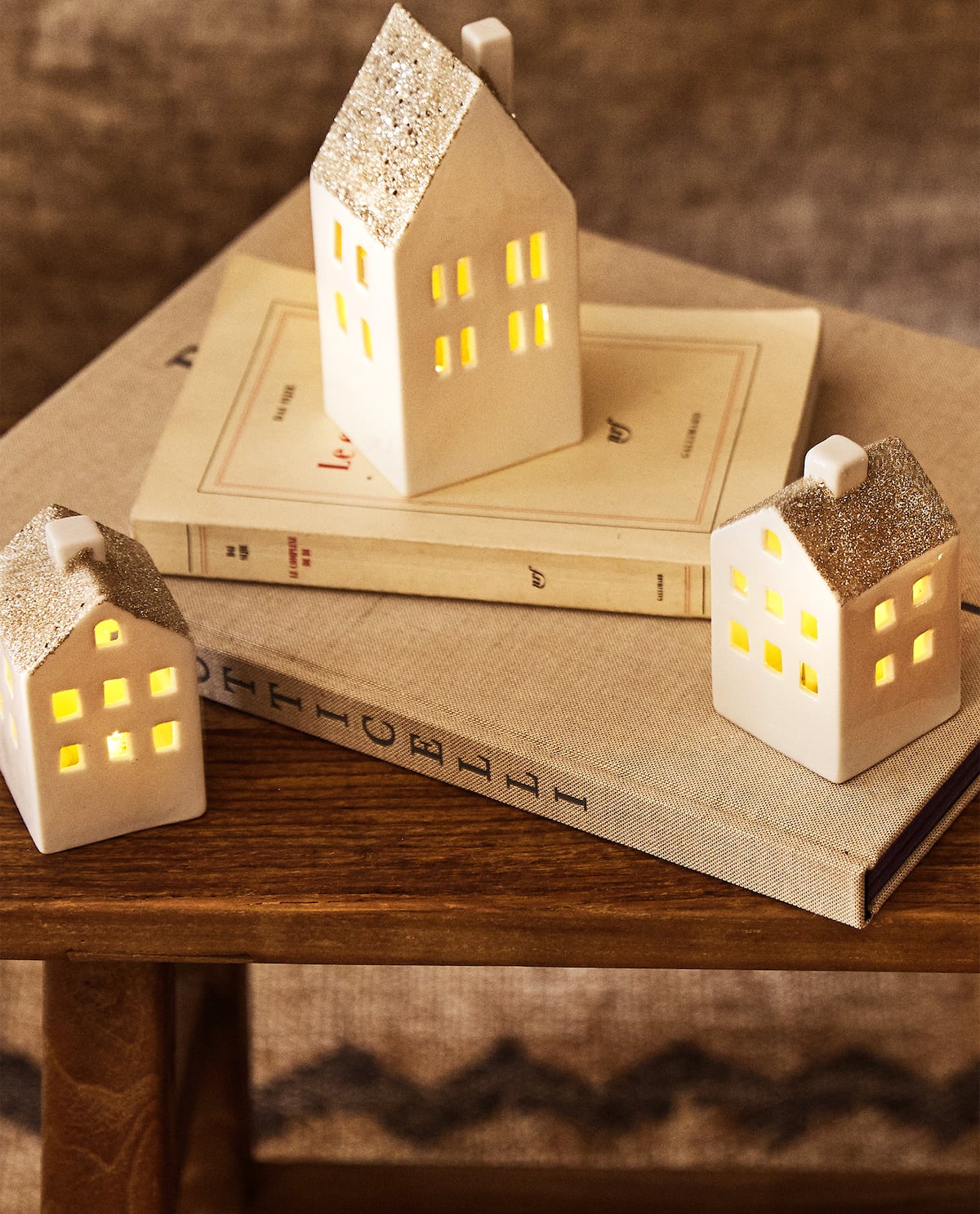 Las estrellas no son las únicas con iluminación y de porcelana que puedes encontrar en Zara Home. Estas pequeñas casitas también son ideales para la decoración, y las tienes en diferentes tamaños.