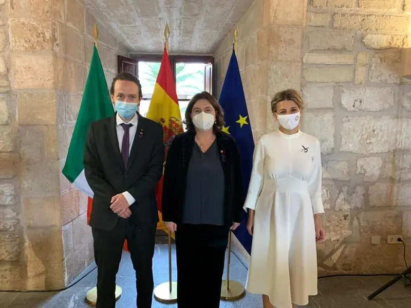 Ambas ministras han participado en la XIX Cumbre Hispano-Italiana que se ha celebrado en Palma. Durante el encuentro que mantuvieron Díaz y Catalfo se ha hablado del salario mínimo en el marco europeo, el impulso de la economía social, el trabajo a distancia y las herramientas para afrontar el mantenimiento del empleo en la pandemia, como han sido los expedientes de regulación temporal de empleo (ERTE) en España y la ‘Cassa Integrazione’ en Italia.