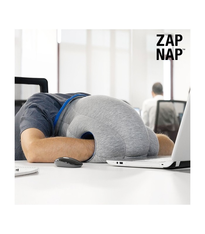 La idea de esta almohada es poder echar una siesta en cualquier lugar, como en la mesa del escritorio, en un transporte público, en el aeropuerto, en un avión, etc. Toda la comodidad cuando quieras. Para ello han creado una especie de almohada con tres agujeros, uno para meter la cabeza y otros dos laterales para las manos.