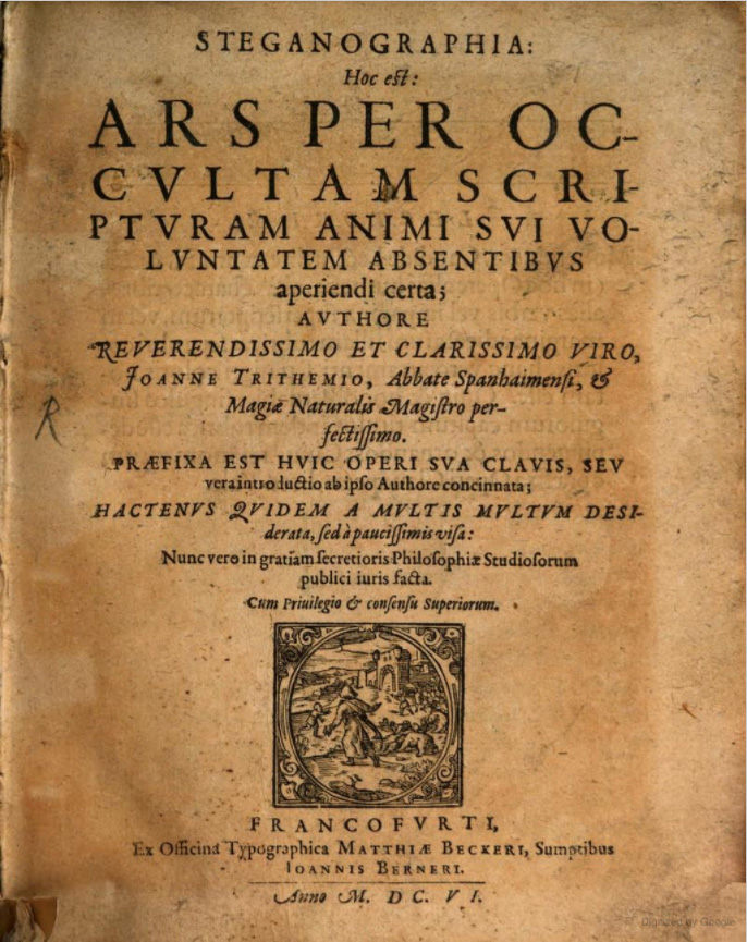 Este monje alemán era un erudito, maestro de alquimia y hechicero. Y en esta obra se plantea la hipótesis de transmitir información codificada a distancia usando espíritus. Es decir, cómo usar los fantasmas como palomas mensajeras…