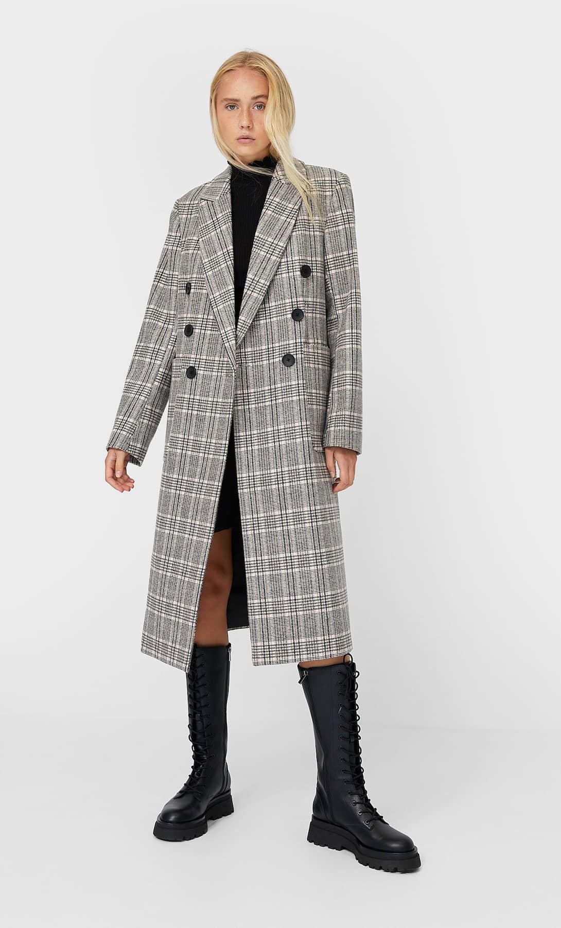 Pasamos a otro abrigo de Stradivarius con un diseño igualmente llamativo. Anteriormente te mostramos un abrigo con cuadros de tipo leñador, y mencionamos los cuadros de tipo vichy.
