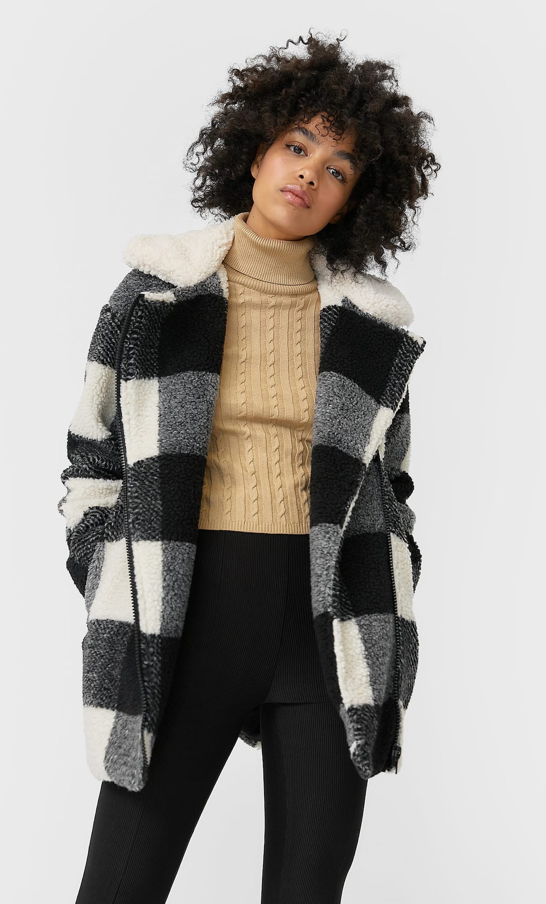 El borreguito es un tipo de tejido que verdaderamente apreciarás durante el invierno, ya que no conocerás el frío usándolo. Entre los abrigos de Stradivarius, puedes disfrutar de este increíble diseño con el que te verás espectacular a la vez que estarás bien abrigada.