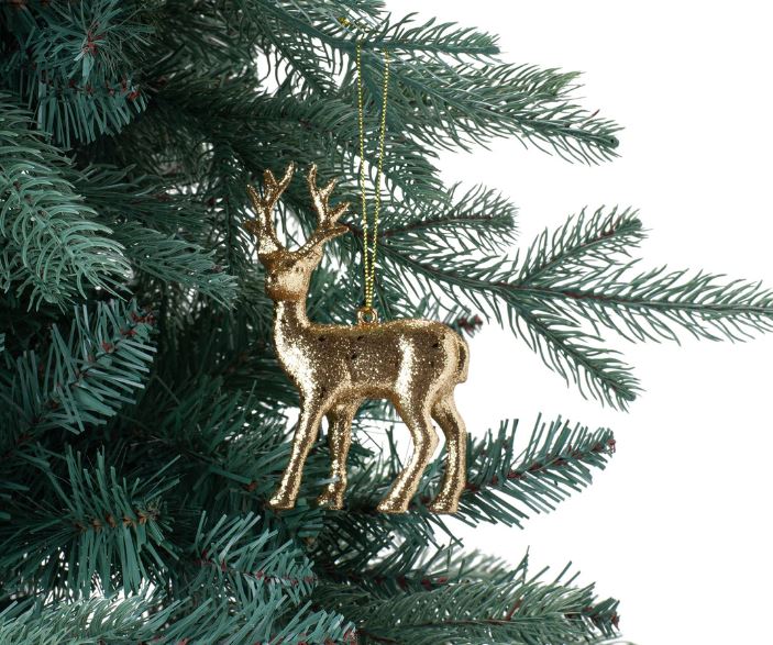 El siguiente adorno navideño de El Corte Inglés es este colgante de reno glitter. Se trata de un reno fabricado en resistente PVC y con acabados brillantes. La cuerda está hecha para colgar el adorno en el árbol como las bolas, aunque también se puede poner en otros lugares como la puerta o la chimenea.