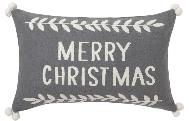 En cuanto a sus medidas, el cojín es de 30 centímetros de ancho y 50 de largo. El color del cojín es el gris y las letras son de color blanco, teniendo tambíen un dibujo del clásico muérdago de Navidad. El precio del cojín es de 19,95 euros.